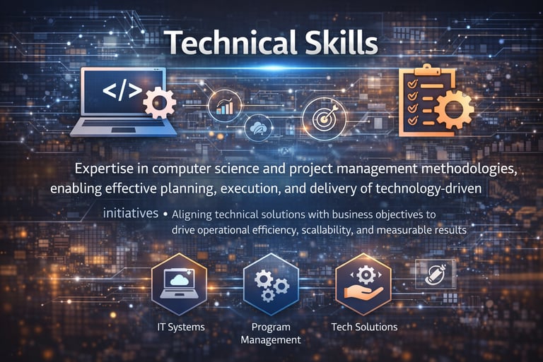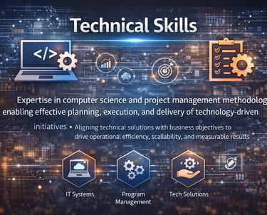 Strong foundation in computer science and modern project management methodologies, enabling the effective planning, execution, and delivery of complex, technology-driven initiatives. Experienced in aligning technical solutions with business objectives to drive operational efficiency, scalability, and measurable results.